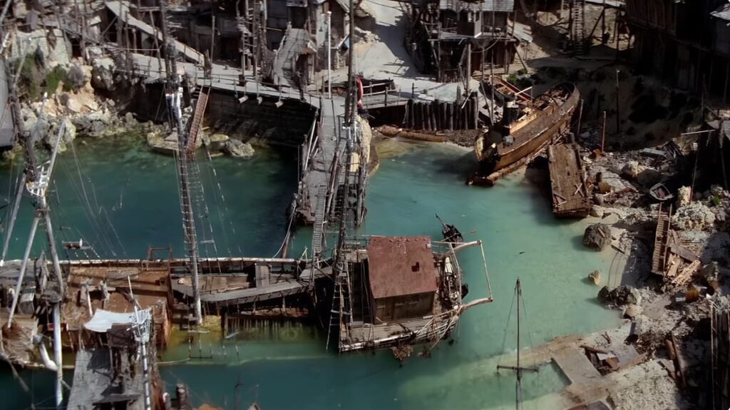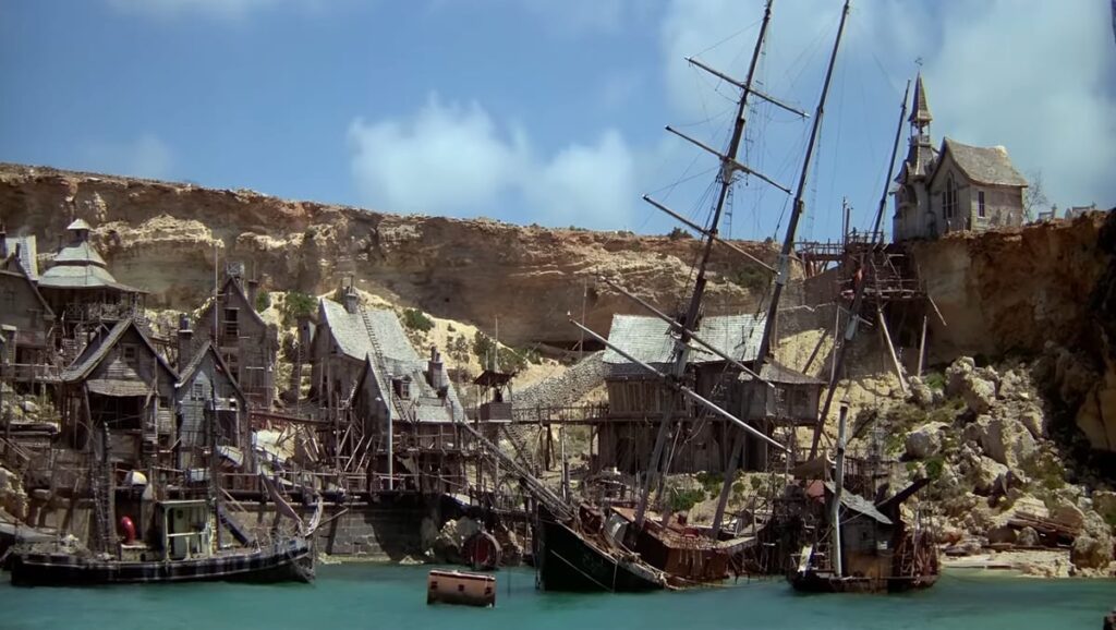 - Filming in Malta left behind the Popeye-Village set, which now serves as a tourist attraction